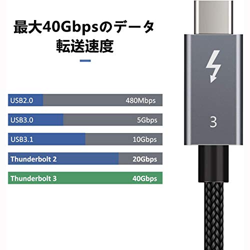 Thunderbolt 3 Usb C ケーブル 1m 40gbps Thunderbolt 3 ケーブル アダプタ 日本