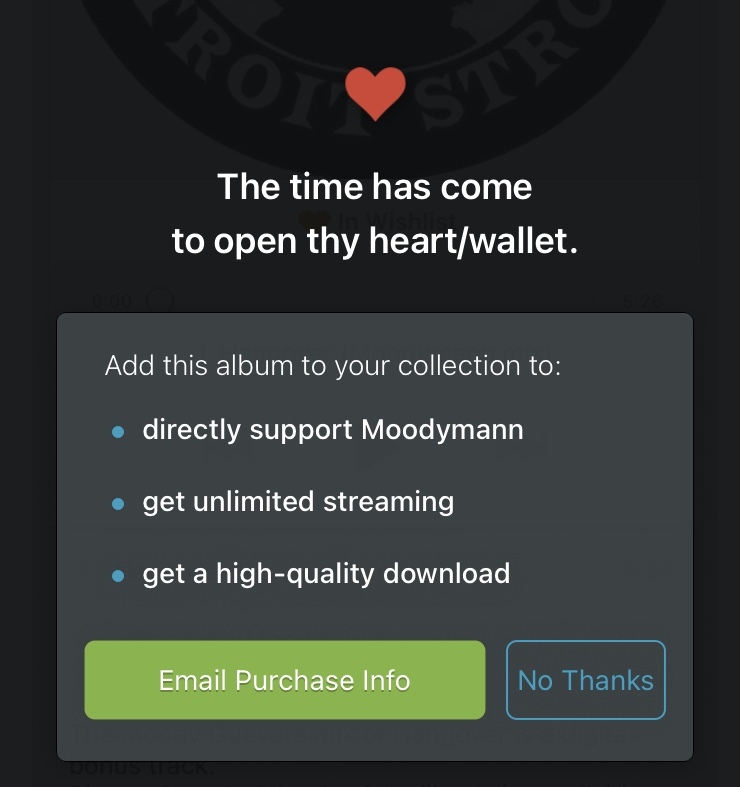 Bandcampというアプリで買わずに何回か聴くと画像の画面になり No Yahoo 知恵袋